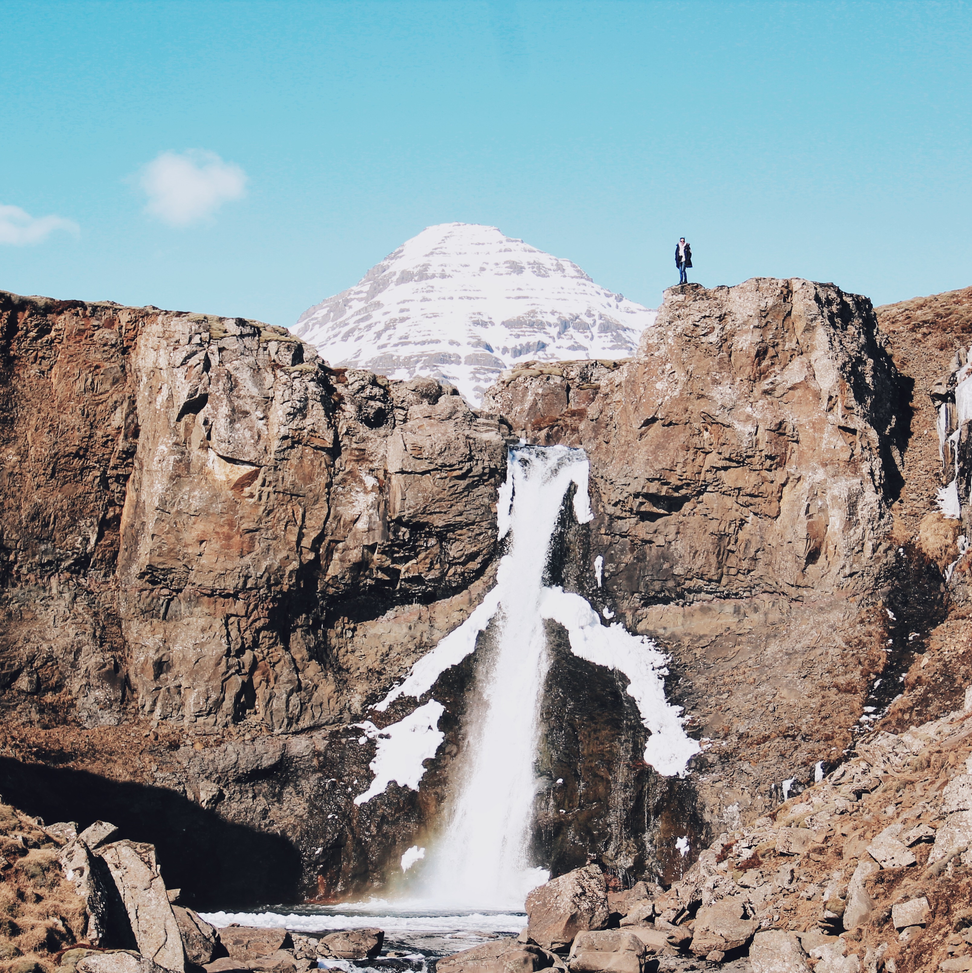 We didn’t even bother stopping at Breiðdalsvík. A few minutes later, Arturo spotted a waterfall almost hidden behind the rocks.