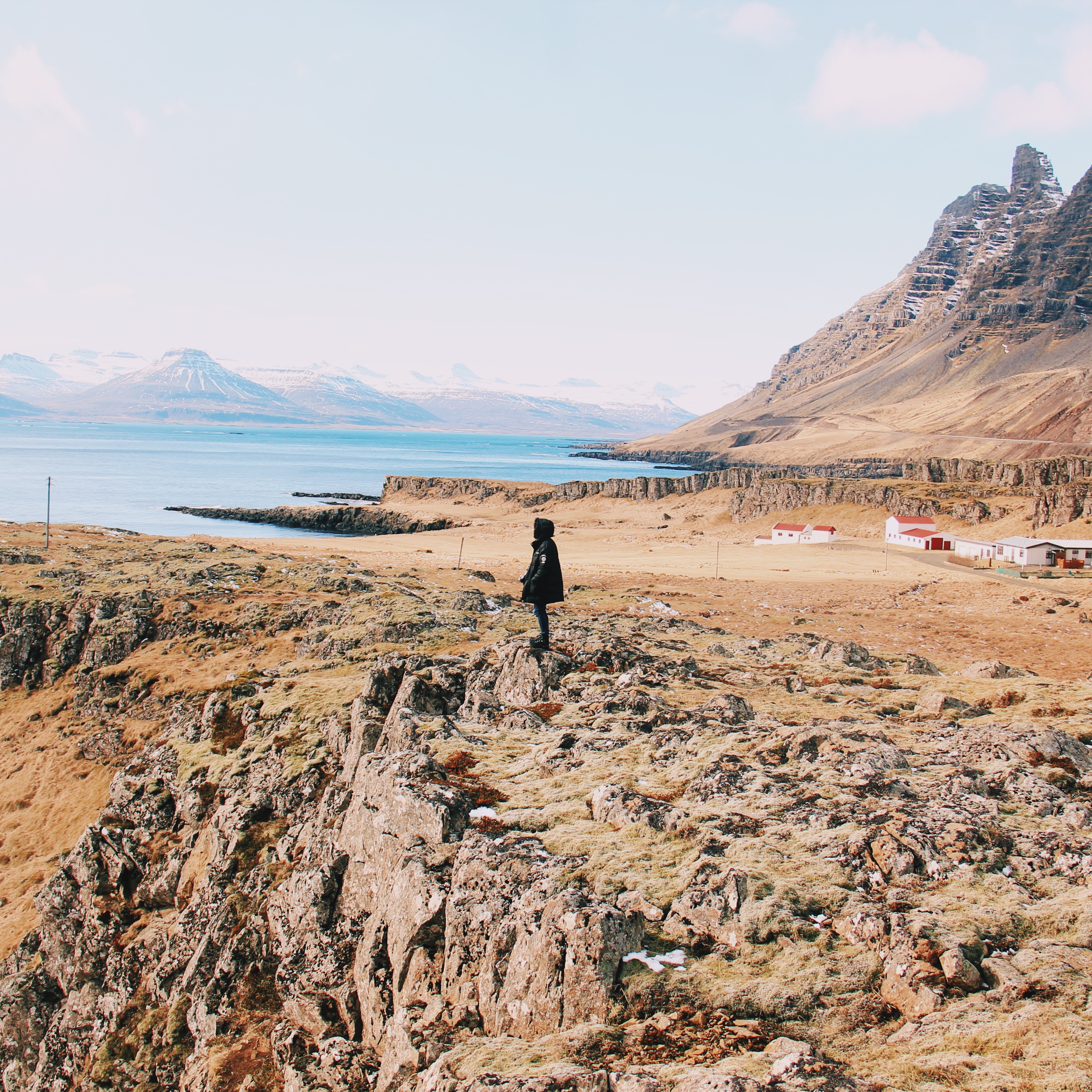 Halfway between Stöðvarfjörður and Breiðdalsvík, there’s a path to a miniature peninsula, with huge rocks where birds nest and make noise like crazy. There’s also a lighthouse that’s kinda tacky and a typical farm with red rooftops.